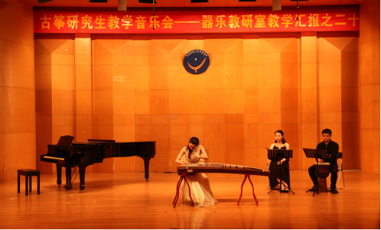 经过师生的共同努力,音乐会终于在26日下午4时15分拉开帷幕。此次音乐会由古筝演奏方向的八位研究生担任演奏。在同学们的精彩演绎中,我们感受到了西北的热情爽朗,江南的柔婉缠绵,涓涓水流生于泉,聚于溪,海纳百川、包罗万象的澎湃与激情;英雄末路心怀天下却报国无门的悲壮,尽在其中。
