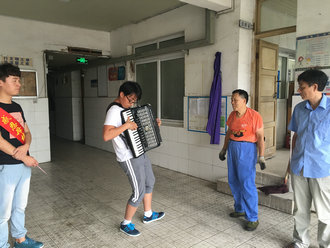 利用食堂工作人员的空闲时间,2016届学子们还在赭山校区食堂二楼举办了一场小型的文艺演出。《我要飞的更高》、《七月草原》、《最美的太阳》、手风琴表演、唢呐独奏等节目,学子们的倾情表演让食堂员工们乐开了花。表演完毕后,学子们向辛勤劳作的员工们献上了鲜花与贺卡。