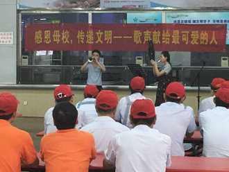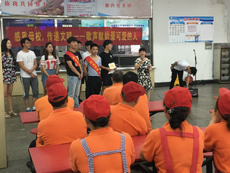 6月24日,学子们还前往花津校区,到施工现场向工作在一线上的后勤人员表达感恩之情。