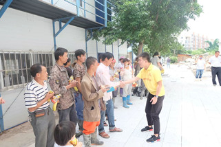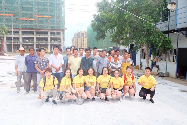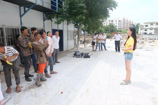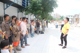 最后一站,团队来到了弥勒县的一处建筑工地,为辛苦工作的建筑工人们带来了一场满载爱心的慰问演出。虽然天气炎热,现场条件简陋,但依旧阻挡不了队员们的热情,他们为工人们演唱了《等待》、《玫瑰三愿》、《教我如何不想他》、《相亲相爱》等大家耳熟能详的歌曲,工人们听完拍手叫好,似乎勾起了他们对曾经的美好回忆,又充满了对未来的无限遐想。除了许多精彩的节目,队员们还带来了各种解暑食品和饮料慰问这些辛勤工作的基层一线人员。