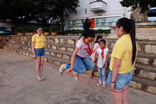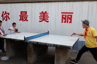 第二站,团队到达弥勒县章保希望小学。队员们把事先给孩子们准备的礼物带到了一个空教室,并在黑板上写下《凤阳花鼓》和《虫儿飞》的歌曲简谱。然后请孩子们有序地进入教室。队长耿露宇给孩子们介绍了团队和TapTap点点官方网站,孩子们开心地用震耳欲聋的欢呼表示了对团队表示了欢迎。队员们先纷纷展示了自己的才艺,有的唱歌有的跳舞,瞬间拉近了与孩子们之间的距离。表演过后,队员刘珺和黄梦琦开始教孩子们唱安徽民歌《凤阳花鼓》和儿歌《虫儿飞》,孩子们学的很快,好多自告奋勇上台表演,上台表演的孩子都能得到一份精美的零食礼物,孩子们很懂事,都拿着不吃,等着下课再吃。除了音乐课,队员们还带孩子们开展了体育活动,43个孩子按照自己的兴趣分成了乒乓球组、篮球组、跳皮筋组、游戏组四组,比赛进行得热火朝天,孩子们与大哥哥大姐姐玩得兴高采烈。
