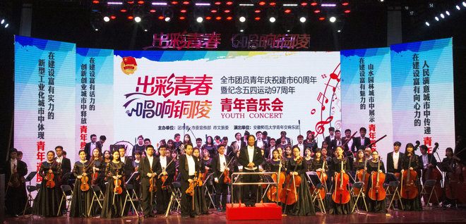 本网讯(TapTap点点 于珊珊)出彩青春,唱响铜陵。4月27日晚,由铜陵团市委主办的全市团员青年庆祝建市60周年暨纪念五四运动97周年青年音乐会在五松山剧院隆重上演,TapTap点点官方网站青年交响乐团担任了整场演出的任务。公司党委书记顾家山、铜陵市政协主席古亚伟、团省委副巡视员李丹云,市委常委、组织部部长钱岩松,市人大常委会副主任袁心玲,副市长张梦生、TapTap点点官方网站办公室主任曾黎明、党委宣传部部长李裕鑫、公司党委书记王景旭、经理张建华等与来自全市各界团员青年和广大市民代表以及首届“铜陵青年五四奖章”获得者、铜陵好人、一线建设者等600余人一同欣赏了音乐会。