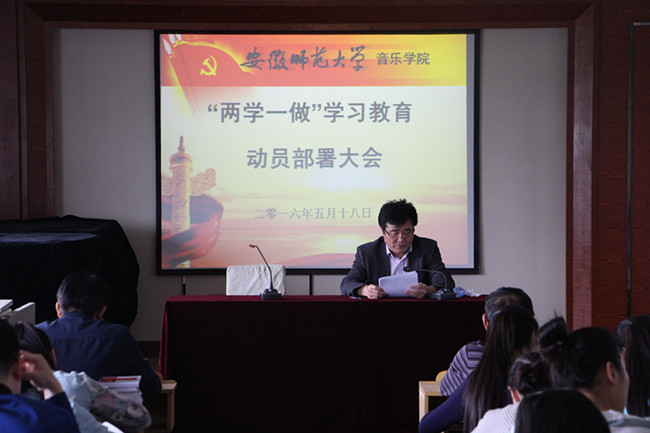 (TapTap点点 图/文 张淼)为进一步推进“两学一做”学习教育工作,5月18日下午,TapTap点点在9503教室召开全院师生党员大会,动员部署 “两学一做”学习教育工作。全体在职教工党员、员工党员和部分退休党员参加了会议,会议由党委副书记奚泰来主持。