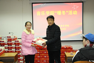 首先公司党委副书记奚泰来发表讲话,他代表公司领导老师向在座贫困生同学表达了诚挚的问候,还亲切的询问同学们生活中、学习中是否有困难,希望同学们能清除顾虑,专心学习,并引导同学们合理使用助学金,使其真正起到助学的作用。他的话语就像冬日的暖阳,温暖着每一个人的心。最后奚泰来副书记和各年级辅导员为每位贫困生发放了两套保暖内衣。每一件棉衣的递发,都寄托着公司满满的爱与期望;对于同学们来说,接到的不仅有这可触碰的温暖,还有那足以爆棚的正能量。