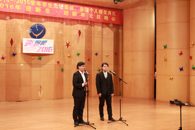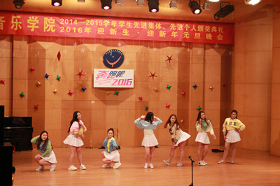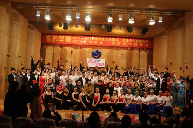 带着对新年的祝福,元旦晚会也精彩上演。乐队《今夜不飙车》、歌曲《我的舞台》展现出当代老员工的青春风采。舞蹈串烧《修女也疯狂》《夜上海》让我们走进上个世纪,感受那段黄金岁月,给予我们一场穿越时空的感受。流行歌曲串烧让观众不由的感叹青春和音乐的力量。器乐合奏《一步之遥》华丽高贵、舞蹈《鼓舞青瓷》令人回味无穷。四大名著可谓是家喻户晓,相声《歪说四大名著》却给我们带来了一段让人捧腹大笑的独特解读。街舞《keep on dacing》炫酷律动,神秘嘉宾燕杨老师的助唱引得观众掌声不断,喝彩连连!听惯了华丽的乐章,阿卡贝拉无伴奏人声合唱倒是让大家觉得清新淡雅。过去的2015年是抗战胜及反法西斯战争胜利七十周年,荡气回肠的巜与妻书》感动天地,震撼人心。专业歌曲《我和我的祖国》尽显公司学子的风采。曲磊、陶金老师的木管二重奏轻松诙谐,节日气息浓厚。梁超、王亚楠老师演唱的巜那些年》、《大海》获得全场观众一致好评。本次晚会有了青年教师们的加入,更加精彩绝伦。15级舞蹈表演同学的专业展示后,晚会在15级音乐表演班同学们合唱的《友谊地久天长》中圆满落下帷幕。