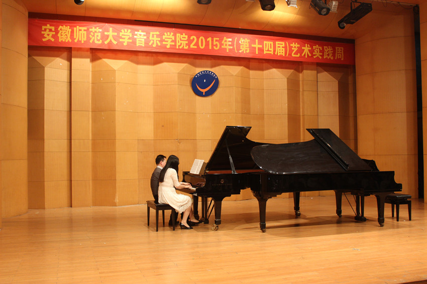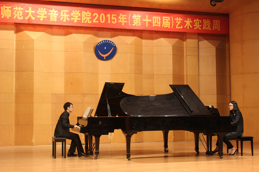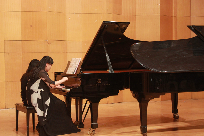 音乐会以陈星和马丽丽两位老师合作的《匈牙利舞曲第一首》开场,此曲情绪激昂,迅速将在场的观众带入了音乐会的氛围,忽慢忽快的音乐节奏,使得音乐的情感表达更加丰富,表达了匈牙利人民热情奔放和吉普赛音乐即兴性的民族特点,同时带动了现场观众的热情。张馨予老师独奏的《船歌》动情婉转,娓娓道来,营造了优雅的氛围,此曲是肖邦晚期的作品,堪称是其最完美的作品。由许凤和柴珂芙老师演奏的双钢琴作品《花之舞》洋溢着线型旋律美、复调交织美和音响音诗美,其浑然天成的多声部现代作曲技法,浓郁的中国西南地区民族音乐魅力,令在场的观众深受感染。孙艺辉老师和徐雪婷的四手联弹《意大利波尔卡》起初有一点忧伤,有一点诙谐,继而越来越快,走向活泼的舞蹈感觉,老师的俏皮演奏,也使得在场的观众不自觉的跟着音乐摆动起来。李翔宇老师的独奏《练习曲OP40.NO.3》带有强大的和声功能的爵士风格,与之前的演奏有着强烈的对比,迅速的收住了全场,营造出静谧庄重的氛围。正当大家沉浸其中时,由卢鸣和涂金伟老师演奏的《D大调双钢琴奏鸣曲K448第一乐章》使音乐会在深沉优美和阳光般温暖的旋律中划上了完美的句号。