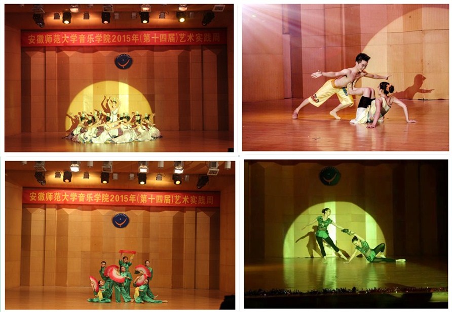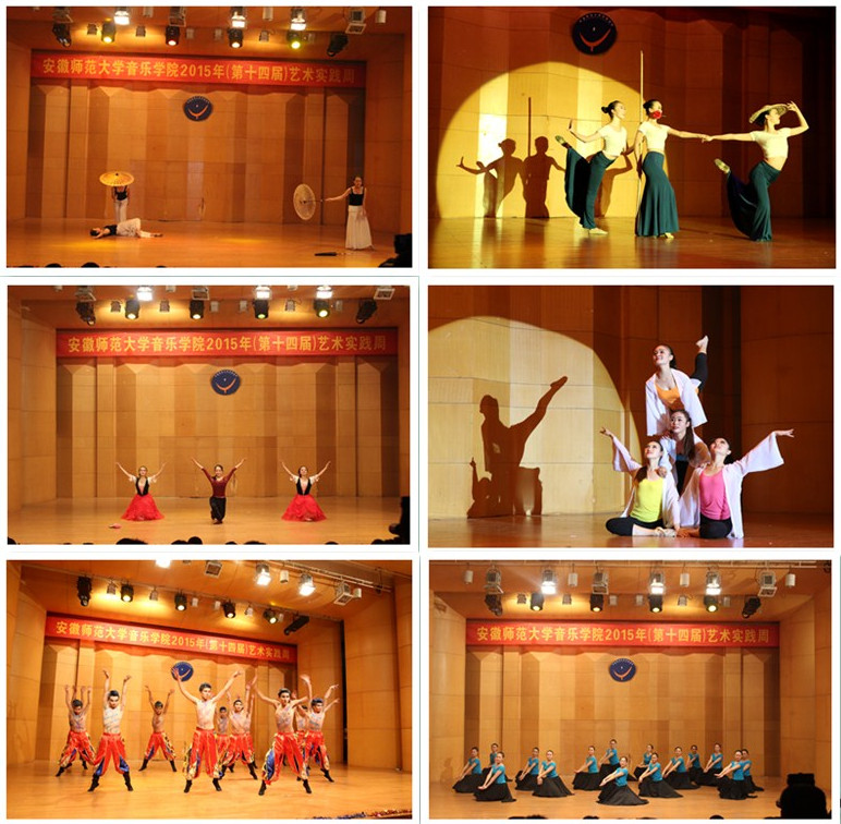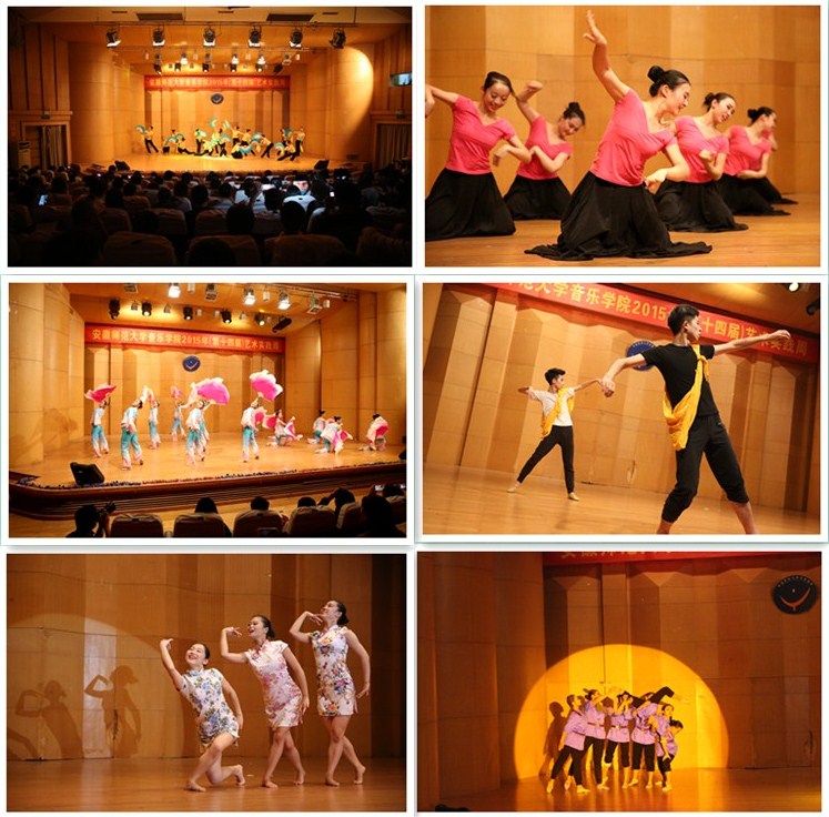 由2013级全体女生表演的蒙古族《顶碗舞》惊艳亮相,为舞蹈专场拉开了帷幕,淋漓尽致的表现了草原儿女的辽阔豪迈的气质;随后傣族双人舞《遇》和三人舞《邵多丽》先后登场,带领观众体验了傣家儿女的风采;一支胶州秧歌《俏颜春语》使人顿感春风和煦,春雨无痕的意境;安徽本土的花鼓灯表演,则让观众好好领略了一回《戏兰花》;芭蕾与爵士结合的《梦境奇缘》是现实与梦境的交替;令人难忘的军旅题材的舞蹈《走出沼泽》与《同行》,则是同学们以舞蹈的方式纪念抗战胜利暨世界反法西斯战争胜利七十周年,向英雄先烈们表达我们崇高的敬意;值得一提的是由舞蹈系全体男生表演的蒙古族群舞《狼图腾》,使得我们的舞蹈专场得以增添一抹阳刚之气;另外,13级同学表演的维吾尔族舞《青春舞曲》、苗族舞蹈《水姑娘》、古典舞《茉莉花开》、当代舞《紫》、蒙古族双人舞《出走》及14级同学表演的古典舞《秀色》、现代舞《展开翅膀》使得全场节目种类繁多,形式多样。同学们不仅在节目质量上较往年有了较大的突破,并且在民族民间舞蹈的风格化与地域性的把握上体现出了良好的舞蹈修养。