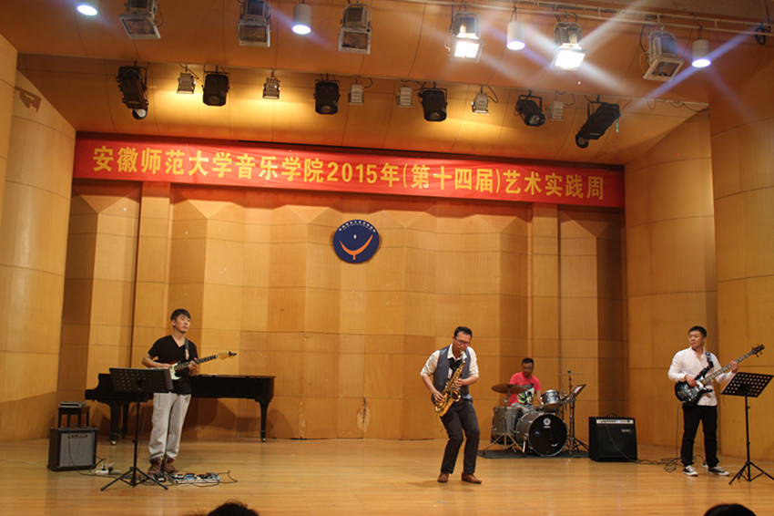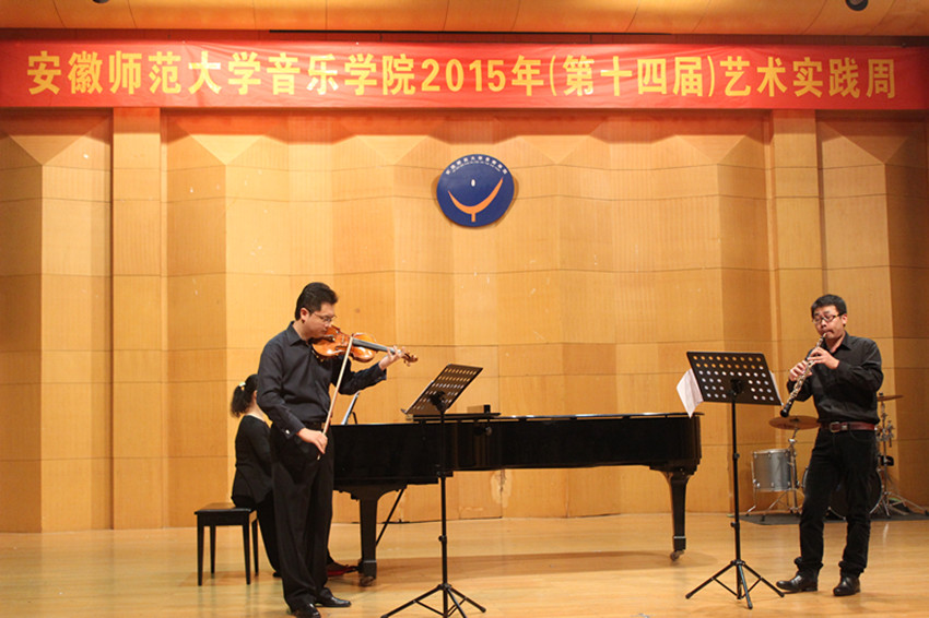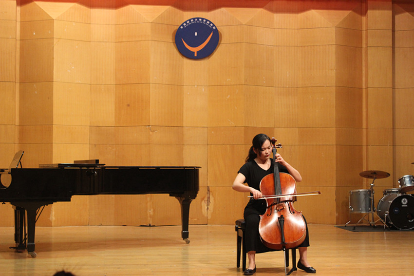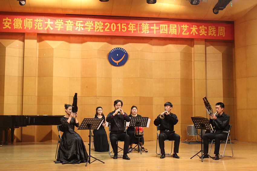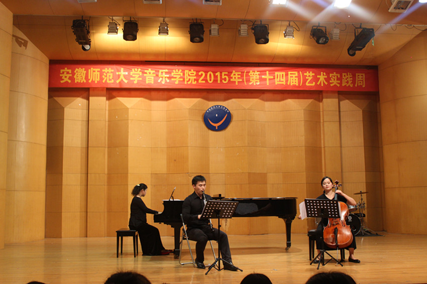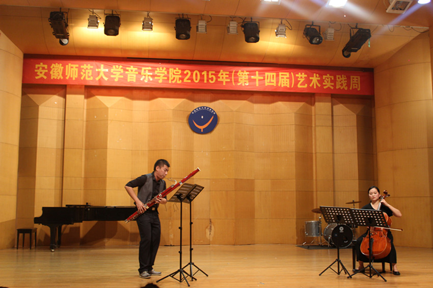 音乐会由高长春老师领奏的唢呐重奏曲《啦呱》开场,“啦呱”是北方地区方言,是聊天、拉家常的意思,啦呱有的热情、有的平淡各有特点。本曲则是一首喜庆热闹的吹打乐作品,使观众一开始就沉浸在十分欢快的氛围中。牛林、陶金两位老师表演的小提琴、双簧管二重奏《c小调协奏曲二、三乐章》是巴赫于1730年在一家咖啡馆为小提琴和双簧管而作的协奏曲,乐曲分为慢板和快板两个部分,慢板旋律优美,快板节奏鲜明,老师们深情投入的演出,让我们仿佛看到一副美景。紧接着是曲磊、魏蔚、李春犁三位老师带来的单簧管、大提琴与钢琴三重奏《萨尔茨堡小夜曲》,优美的旋律、丰富的和声使观众深深陶醉。朱敏老师表演的古筝独奏去《五陵吟》由魏军创作于2004年,借景抒情,描写了作者病患期间的孤独、凿惬、挣扎与坚持的心路历程,朱老师把这首作品的迷惘之情表现的淋漓精致,让观众如临其境。大提琴独奏《G大调第一组曲前奏曲》,是巴赫为大提琴独奏写的六组无伴奏大提琴组曲之一,这六首组曲称得上是经典中的经典,而其中的第一组曲,乐曲结构干净,音乐色彩明亮,魏蔚老师的表演也让人听了眼前一亮。张博泽和魏蔚老师表演的大管、大提琴二重奏《降B大调协奏曲》是莫扎特创作于1774年并流传于世的第一部管乐协奏曲,此曲婉转动听,把听者带入如诗如画的情景中。最后,陈晞老师表演的萨克斯独奏《wave》和《mr clean》,分别是拉丁美洲风格的爵士BOSS和十分劲性的近现代作品,此曲完整演出后,全场掌声不断,在场听众激动万分,使音乐会达到高潮并完美收官。