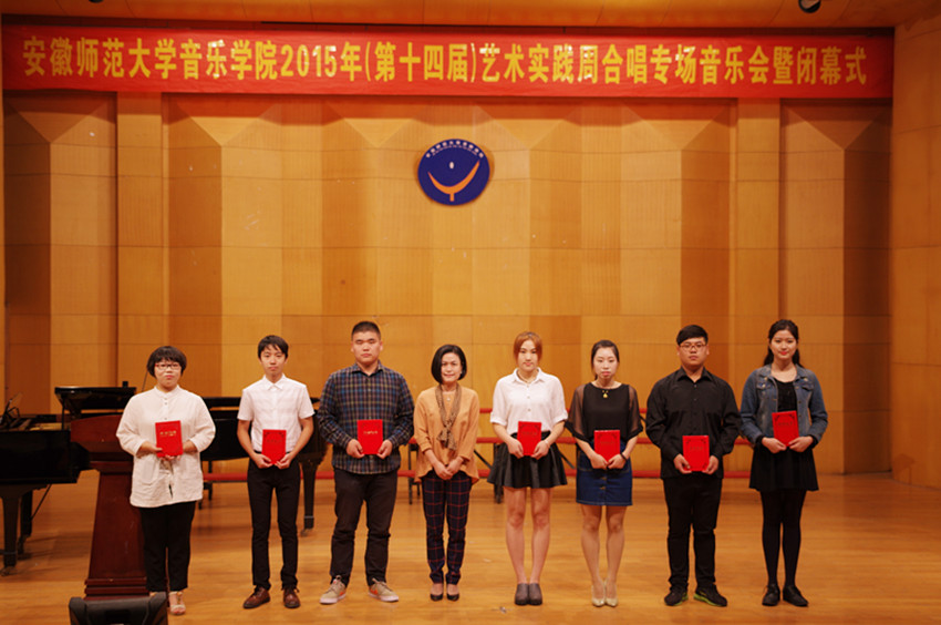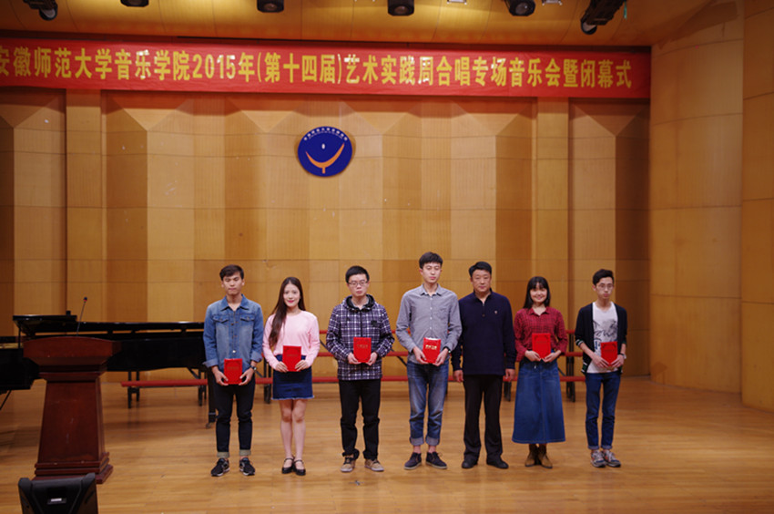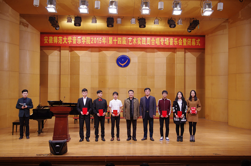 闭幕式伊始,由院领导、老教师代表颁发了本届艺术实践周最佳演唱奖、最佳演奏奖、最佳表演奖、最佳节目奖、最佳组织奖以及最佳幕后工作者奖。颁奖结束后副经理李庆丰上台致闭幕词,首先祝贺第十四届艺术实践周取得了圆满成功,接着用几个“之最”概括了此次艺术实践周取得的成绩,并宣布本届艺术实践周闭幕暨“合场专场音乐会”正式开始。