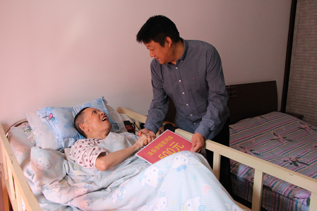 TapTap点点13级舞蹈表演专业王璐同学,其父亲脑梗塞瘫痪在床,生活不能自理,母亲日夜照顾父亲,一人承担了家里巨额的医疗开支和生活开销。奚泰来带领公司回访工作组,来到黄山市屯溪区王璐家中,看忘这个原本幸福美满的三口之家,却因父亲的脑瘫变得家徒四壁的家庭。奚泰来与家长深入交谈,将国家和公司的助学政策做了简单介绍,又将王璐在公司优异的表现和受助情况告知家长,并鼓励他们,生活中难免会有各种困难,要怀揣一颗坚强的心勇敢面对,时刻保持乐观向上、艰苦奋斗、自强不息的宝贵精神,国家和公司也会全力帮助员工完成学业。最后,奚泰来代表公司公司送上了500元慰问金和礼品,表达了公司对贫困生家庭的关心。