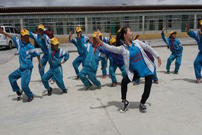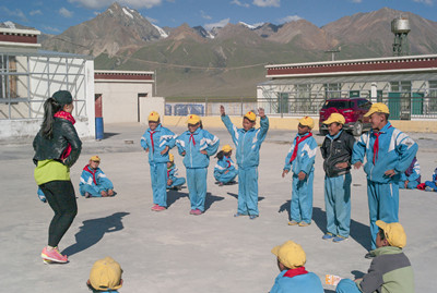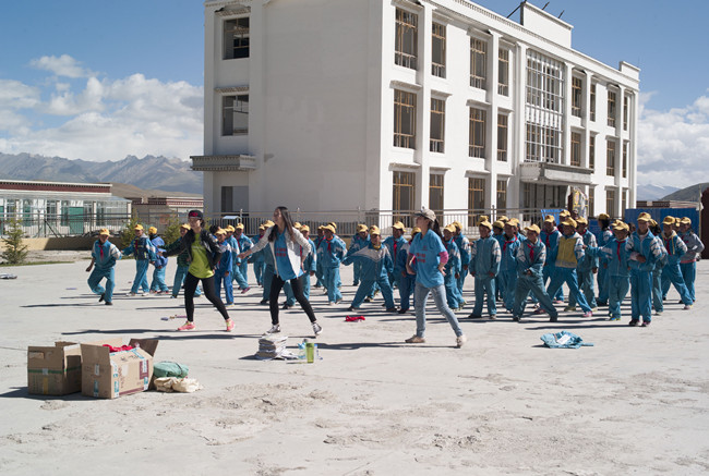 之后的每一天早晨,队员们都会陪着孩子们在空地上晒着阳光读书。上课时间就进入课堂与孩子们一起交流,拿出专业知识,教他们乐理和各个民族的舞蹈,员工们对从未接触过的东西抱有极大的兴趣。对于各种舞蹈动作,都积极的跟在队员身后认真学习,虽然学的动作没有多标准,但他们能通过舞蹈学到解到不同民族的艺术文化。在学习之余,简单的游戏丢手绢让孩子们也一下子兴奋起来,这次西藏之行同学们带了很多的文具,通过游戏和课堂内容比赛奖励给孩子们,他们得到礼物时都特别的积极兴奋。我们还组成了中心小学第一个足球队,男生们都特别积极的参与。而女生们则把我们团团围起来,和我们聊起外面的世界,他们对外界很是向往,我们也希望他们能够走出西藏到外面的世界去看看。