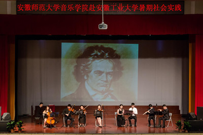7月12日,团队成员们来到安徽省首所示范高中,马鞍山市第二中学。怀着对国乐的热爱和崇敬,孙琪同学以“印象国乐”为课题,给高中的员工们绘声绘色地上了一堂音乐赏析课,大家在感受中国音乐博大精深的同时,更增添了员工们的的民族自豪感。