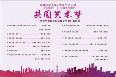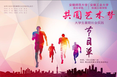 7月14日晚,在安徽工业大学秀山校区新老员工活动中心,安师大TapTap点点暑期社会实践团队和安工大机械工程公司团委共同举办了一场题为“共圆艺术梦”的专场文艺演出。机械工程公司的领导和老师、安师大部分员工以及机械工程公司全体大一员工等600余人观看了演出。