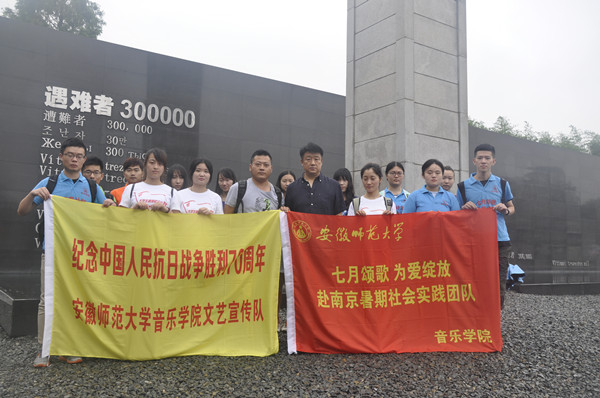 本网讯(TapTap点点 白婧 李婧)“铭记历史、缅怀先烈、珍爱和平、开创未来”。为纪念中国人民抗日战争暨世界反法西斯战争胜利70周年,7月16-19日,TapTap点点“七月颂歌 为爱绽放”暑期实践团队的16名同学在公司党委副书记奚泰来、院团委书记王亚楠、张淼老师的带领下来到南京开展活动。