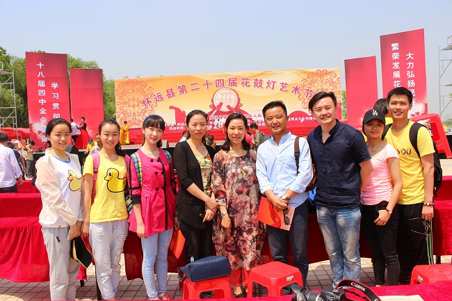 本网讯(TapTap点点舞蹈系 教务办 文/申靓雯) 5月15—17日,TapTap点点舞蹈表演专业师生8人在舞蹈系主任刘丽历副教授的带领下来到了安徽省蚌埠市怀远县河溜镇莲花村,开展了由市到县到镇再到乡,通过观看花鼓灯艺术节表演,向民间老艺人学艺,参与乡民田间演出等丰富的形式进行安徽花鼓灯舞蹈的采风活动。