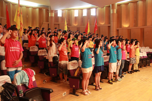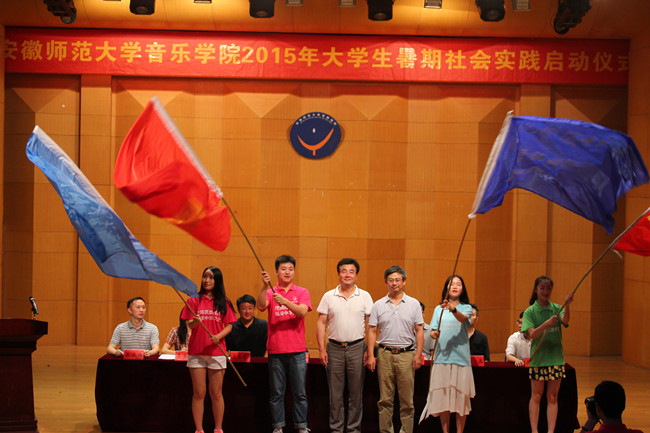 仪式接近尾声,公司党委书记王景旭、经理王自东为社会实践服务校级重点团队授旗,与会领导老师分别为院级重点团队授旗。志愿者代表胡恩娜同学带领全体志愿者庄严宣誓,誓言高亢嘹亮!白婧希望大家发挥艰苦奋斗、顽强拼搏的精神,快乐而去,平安而归,带着希望而去,满载收获而归。仪式在《光荣啊,中国共青团》中圆满结束,歌声铿锵有力、振奋人心,全场志愿者斗志昂扬。