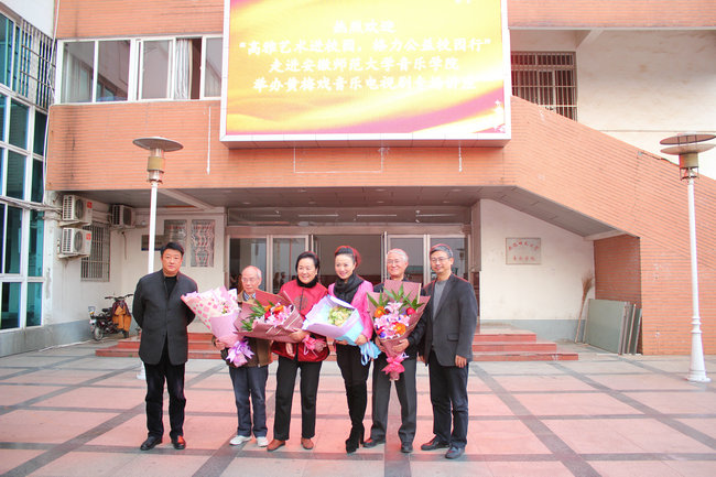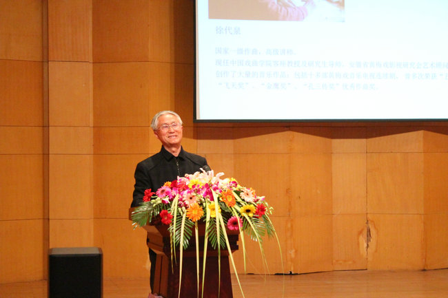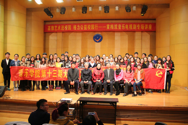 作为讲座的主讲人,周天虹以生动风趣的语言介绍了黄梅戏的起缘、发展、成熟、飞跃和现状。1988年,胡连翠导演以“大黄梅艺术”为追求,创造性地将黄梅戏抒情婉转、琅琅上口的唱腔音乐和电视剧快节奏叙事手法、普通话对白、实景拍摄以及现代音乐元素相结合,独创了黄梅戏音乐电视剧这一崭新的艺术样式,极大地拓展了黄梅戏的传播范围、迅速提升了黄梅戏的影响力,为黄梅戏走出安徽、走向世界做出杰出的贡献。徐代泉为大家阐述了黄梅戏音乐电视剧的音乐创作,讲解了戏曲音乐的作曲方法以及一些经验之谈,让同学们受益匪浅。讲座结束后,同学们还意犹未尽,围着周导和老艺术家们问这问那。