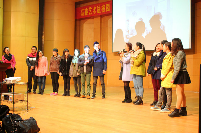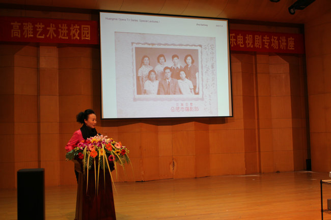 讲座上还展示了经典的戏曲选段、片头等,如《郎对花姐对花》、《二月》等,让同学们在感受安徽传统戏曲的源远流长及独特魅力的同时,也让同学们感受到了制片人的不易以及黄梅戏音乐电视剧的现实意义。安徽卫视主持人罗斌、王乐乐、鲁垚、徐艺菲以黄梅戏对唱、黄梅戏知识问答等方式与同学们进行互动,调动了全场的气氛。