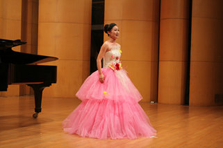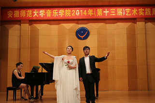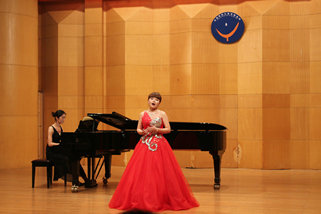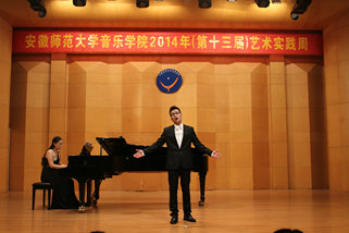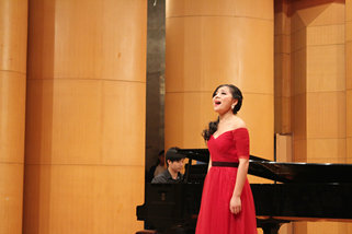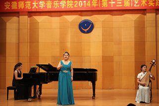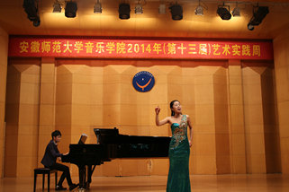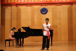 下半场中国作品与外国作品交替呈现,完美演绎了中西方音乐的魅力所在,碰撞出激情的火花。一首传统的中国民歌《三十里铺》让我们体会到了民族音乐的精粹,《我要建一座王宫》则把我们带入了西方古典音乐的殿堂。最后一个节目,是由2012级声乐专业的乔钰同学演唱的《秋水长天》,乔钰同学用时而高亢有力时而舒缓细腻的声音为听众展开了一副气势磅礴,意境苍茫的图画,完整的艺术呈现深厚的情感表达令现场听众时而屏息凝神、时而欢欣鼓舞,博得了满堂彩。