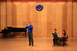 一曲欢俏的民族吹打乐《淘金令》揭开了音乐会的序幕,这是一首由师大打击乐与吹管类专业师生共同演绎的合奏曲。水生于泉,聚于溪,汇于海,《林泉》之曲将水的形态和内在张力表现出来,“音为琴生、乐由心生”大概亦是如此吧!一首具有美国乡村音乐风格的扬琴曲《乡村抒怀》其优美抒情的旋律、亮丽清脆的音色,欢快活泼的节奏,为听众带来浓郁芬芳的乡村田园气息;竹笛曲目《山村迎亲人》清丽动人,迎接亲人的喜悦在曲中展现的淋漓尽致;由老师与员工合奏完成的古曲《霸王卸甲》渲染了“力拔山兮气盖世”的气氛;民乐四重奏《小河淌水》将听众带入弥渡人心中长久的期冀与美好的追求之中。公司二胡教师邱波的一曲《离骚》闪耀出爱国诗人屈原鲜明的光辉个性;唢呐教师高长春的一曲《乡音》吹出了游子们归家的心声,他们精湛的技艺赢得满堂喝彩,给员工们一个良好的学习榜样。音乐会在12级古筝乐团演奏的气势磅礴曲调优美的合奏曲《翡翠》中收尾。