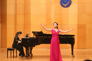 开场曲目《啊!我的虎子哥》表述了主人公追求自由、幸福的愿望,《贵妃醉酒》情感丰富,饱含戏剧性,这两首不同风格的曲目被单泓斐老师同样演绎地淋漓尽致,将不同时期女性的勇敢和内心的叛逆完整地呈现给听众。吴圆圆老师的女生独唱《想着我》则向听众展现了不一样的感情世界,女中音低沉喑哑富有质感的音色娓娓道来,撞击着听众的心灵。接着来由王妍、邱波两位老师合作经典曲目《葬花吟》再次在音乐会现场引起一次小高潮,歌者如泣如诉,二胡忧伤婉转将这首《葬花吟》演绎地更是伤情入骨,让听众思绪万千、深陷其中。而后王文正老师的《乡谣》和《负心人》则碰撞出不同国家、不同地区民族歌曲间的火花。女高音标志性的声乐作品《一首桃花》和《黄鹤恋》让杨丽老师用她温暖、宽广、天鹅绒般的嗓音将这两首作品完美演绎。音乐会在程飞老师所演唱的《美丽家园》中推向高潮,男高音高亢明亮富有爆发力的演唱使现场的气氛进一步升温,掌声如潮水一般久久地在音乐厅上空飘荡。