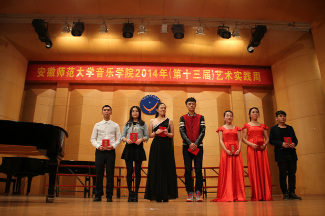 今晚在举行合唱专场音乐会的同时也颁发了本届艺术实践周各专场音乐会的最佳演唱奖、最佳演奏奖、最佳表演奖。领导及教师代表上台颁发奖状并与获奖同学合影留念。