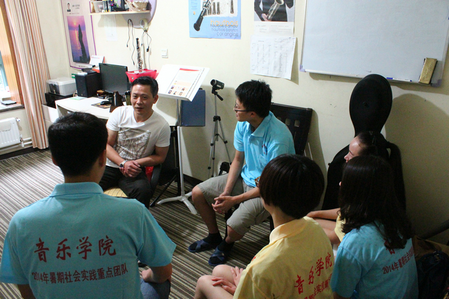 团队先后采访了合肥市民乐团小号首席顾平老师和安徽交响乐团的双簧管首席李胜老师。通过采访与交流,了解到这两支安徽省知名乐团的历史、发展现状、成就与荣耀、面临的一系列问题以及未来发展方向等。在负责人的带领下,团队参观了合肥大剧院、安徽省歌舞团的排练厅和演播厅,并观看了乐团的演出与排练。