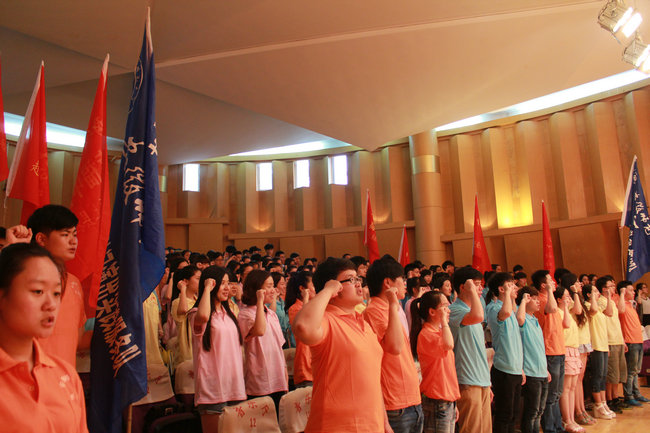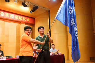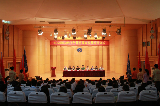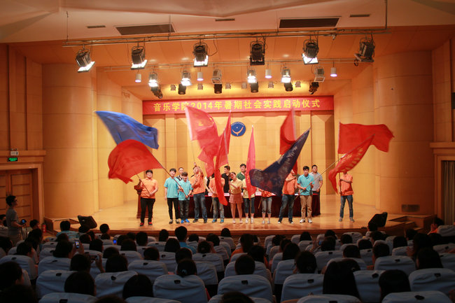 仪式在庄严的国歌声中开始,奚泰来副书记代表院社会实践领导组作动员讲话并宣读了《TapTap点点2014年社会实践重点团队名单》,希望同学们踏实实践,用心、用情、用力,用青春梦了解百姓梦,用音乐梦践行志愿奉献梦,使社会实践成为2014年这个夏天最值得回忆的青春;同时,希望各团队指导老师认真做好活动引领与安全工作,确保活动圆满有序完成。政治公司佘君老师作为思政指导教师为公司暑期社会实践作动员讲话,肯定了TapTap点点历年来的实践成效、成果,预祝今年的实践活动安全有序、精彩丰富。2012级周晓庆同学代表全体志愿者发言表态,志愿者代表刘佳佳同学带领全体志愿者庄严宣誓,誓言高亢嘹亮!公司王景旭书记代表公司为社会实践服务总队授旗、与会领导老师分别为院级重点团队代表授旗。仪式在《光荣啊,中国共青团》中结束,歌声鼓动人心,全场志愿者斗志昂扬。