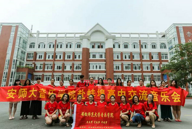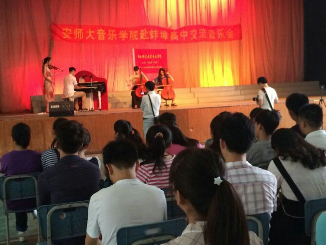 简单的启动仪式后,便开始了调研、交流活动。蚌埠市第三中学、第二中学两所公司均有员工艺术社团,实践团队参观了社团活动场地,对艺术社团成员进行了一对一指导帮扶,指导展开了3场音乐会。