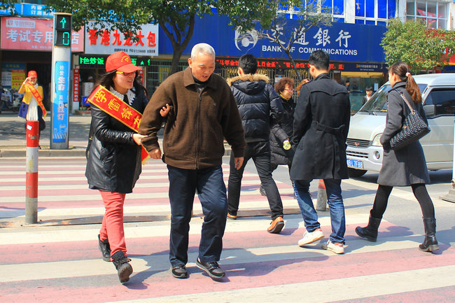 针对公司西门交通较为混乱的情况,志愿者们自发在下班高峰期进行交通协管,文明劝导的志愿服务。一组组志愿者们风雨无阻,在马路两边劝阻行人以及电瓶车、摩托车的闯红灯的行为;替行动较慢的老年人向交通部门提出延长绿灯时间的建议;遇到老年人或者老幼相携过马路的情况,他们便主动询问是否需要帮助,陪伴其顺利通过。