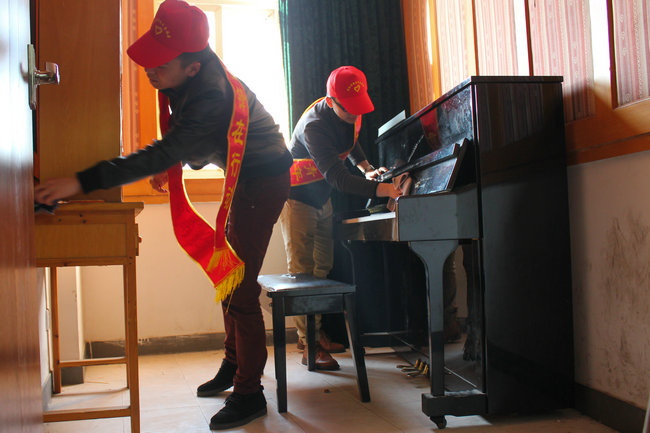 针对公司少数同学在琴房练完琴离开后不能自觉维护琴房清洁的不良习惯,志愿者们利用课余时间,进行卫生检查及清理,劝导同学们离开时带走垃圾、留下美德,顺手将桌椅、钢琴擦拭干净,给自己、也给别人创造一个干净舒适的学习环境。