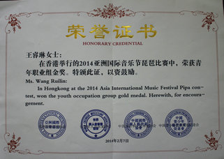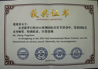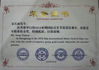 本网讯(TapTap点点 王睿琳)2014年2月6日至8日,由亚洲国际音乐联盟、世界华人音乐家协会、中国国际华人艺术家协会主办,中国青少年艺术教育促进会、香港音乐文学学会协办,亚洲国际音乐节组委会承办的2014亚洲国际音乐节在香港举行。公司2012级本科生宋天雨、王睿琳、2012级硕士研究生张婷婷代表公司参赛,并揽获琵琶青年职业组金奖。公司张迎春老师和硕士生导师潘嫦青老师获“国际艺术节导师奖”称号。