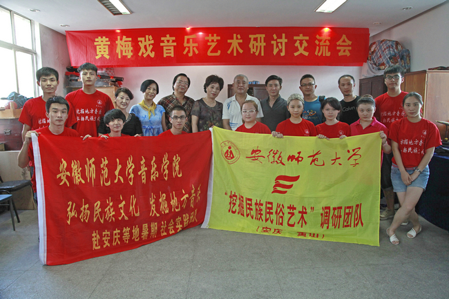 8月10日,实践团队在安庆石化黄梅艺术团开展了一场学习和挖掘安庆黄梅艺术的交流讨论会,以期更深层次的认识和了解黄梅戏。