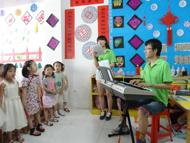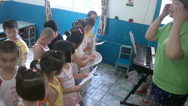 实践中,教小朋友唱歌,稚嫩而喜悦的歌声唱出的是对美好生活的想象,其中《七巧板之歌》、《小小百灵》等还是实践团队原创歌曲,得到幼儿园老师及小朋友的一至认可;与小朋友互动游戏,与他们共同开展联欢活动,既展示了师大TapTap点点的特长也在互动交流中接进了彼此之间的距离。“听到小朋友们大声唱出我们自己写的儿歌,看到他们又大又明亮的眼中露出的好奇与快乐,我觉得,这个暑假过的特别有意义。同时,我也体会到了当一名好老师真的不容易!”队长伍维蒙在实践小结中这样写道。