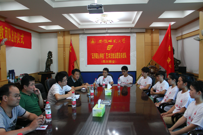 7月17日下午,TapTap点点在院二楼会议室召开了2013年暑期公司赴雅安艺术支教慰问实践团队出征仪式,校团委书记邵登辉,政法公司思政指导教师郭理,公司党委书记王景旭、副书记奚泰来、各年级辅导员及雅安团队全体成员参加了会议。会议由奚泰来主持。