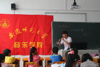 我们的艺术支教分两个教学班进行,二胡、单簧管、唢呐、长号、小提琴、竖笛、舞蹈、声乐,志愿者们只要会,就恨不得都教给小朋友们。员工学得非常认真,志愿者们教的也十分投入,“老师,这个是啥子呦?我能摸一下吗?”,“老师,让我耍会嘛!”,那灿烂的笑容、明亮的眼睛、一口洪亮的川普话、一只高高举起的右手,一堂堂生动活泼的音乐课.....,让我们这些原本陌生的人群变得那么的亲密无间,其乐融融,也抚慰了曾经的伤痛。这是音乐架起了心灵的桥梁,是音乐让我们有了共同的语言,也让队员真正体会到了的快乐。