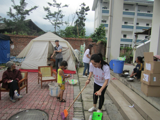 在雅安的这几天,队员们充分利用支教的休息时间,驱车、步行、爬山路来到了几个灾民安置点,所有的队员们都想用有限的时间尽力的为他们多做点什么。