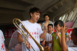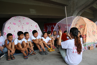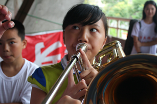 在安置区,可爱的小朋友们围坐一圈,穿着实践团队精心为他们设计的统一服装,拿着赠送给他们的书包和文具盒,听着志愿者们为他们演奏从来乐器,唱着好听的歌曲、介绍器乐的小常识、还手把手的教他们拉琴、弹奏、演唱,做游戏……好奇和开心是绽放在他们脸上最多的表情。将音乐与爱带给最需要的人,在灾难后仍能笑对生活的老人和孩子是团队服务的重点;老吾老以及人之老,幼吾幼以及人之幼,在实践过程中,队员们也真切的感受到了这句话的深刻内涵。