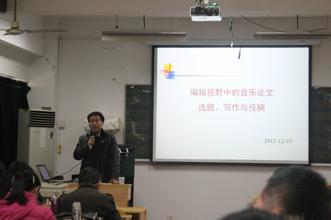 李宝杰由原创作者与编辑的密切关系入题,层层深入地向大家讲解了音乐论文选题、写作及投稿的技巧。突出强调论文选题要慎重,文本表达要有效。对于论文的基本结构与要求,他则以表格的形式将论文的文前部分、主体内容、附文部分呈示给大家,并仔细说明了参考文献的引用格式问题。在讲座中,李教授还以自己在西安TapTap点点学报《交响》多年的工作经验,举例分析了历年刊发稿件中优秀的选题及写作,并针对如何投稿给大家以实质性的指导。