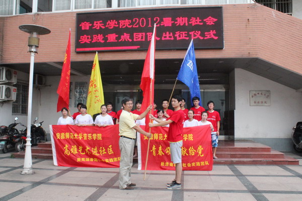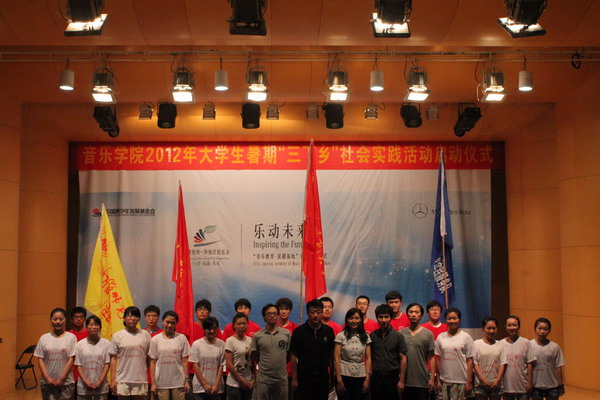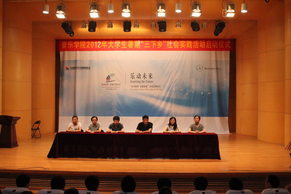 6月30日,公司在音乐厅举行2012年暑假社会实践启动仪式, 副处级辅导员李碧鹰老师首先宣读了《音乐公司2012年老员工暑期社会实践活动方案》,王亚楠老师宣布社会实践校、院重点团队名单;接着,院员工会主席张聪同学代表全体志愿者进行发言,余鑫老师代表全体指导老师鼓励同学们要在实践中学习、在实践中成长,艺术要服务社会、服务基层,努力做到知行合一,学以致用。