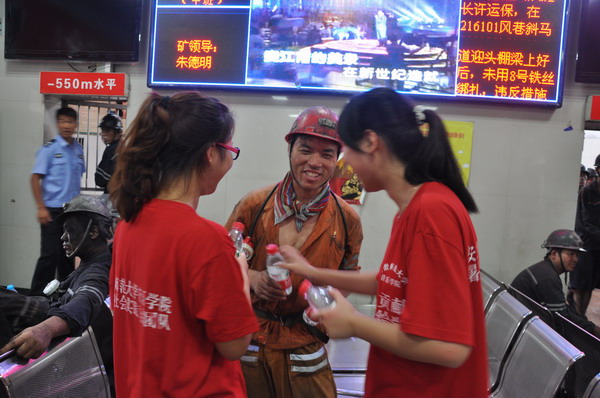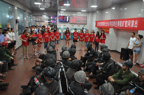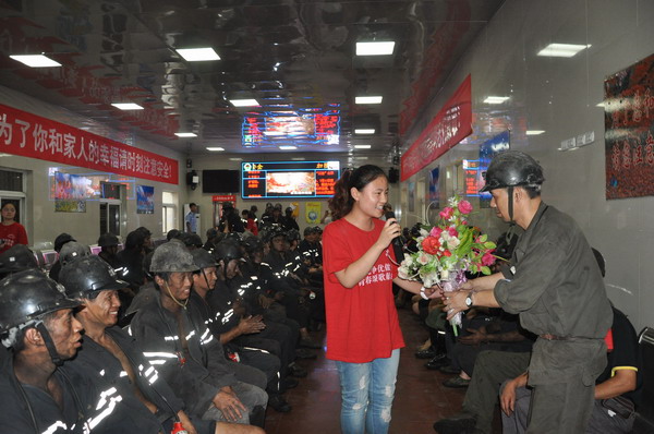 下午16时许,实践团队的所有成员们进入井口地面等候室,来到劳动者身边,为刚刚上井的矿工们送上矿泉水、饮料等,并向他们发放安全知识须知,与他们面对面、心贴心的进行了交流。在临时休息室,队员们为战斗在一线的矿工们献上精彩的演出,整场节目紧扣安全主题,众彩纷呈、雅俗共赏,观众们的阵阵掌声和喝彩声此起彼伏,矿工们还自发为演出员工献上了鲜花,演出现场气热烈,处处充满着欢歌笑语。通过这次实践活动,充分展现了TapTap点点官方网站老员工的良好精神风貌,表达出老员工志愿者们对矿区工作者们的崇高敬意和对矿山安全生产长治久安的美好祝福。(于珊珊)