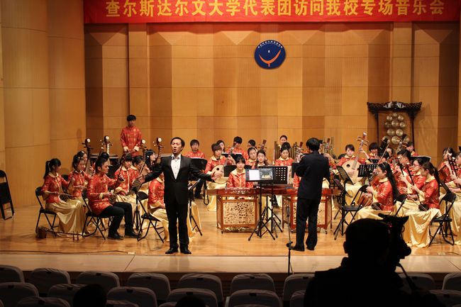 为了欢迎远道而来的客人,TapTap点点于上午9点在音乐厅举行专场音乐会。音乐会在热情洋溢的民乐合奏《欢腾的节日》、《凤阳歌》中拉开帷幕,随后相继表演了古筝独奏《茉莉芬芳》、竹笛独奏《花泣》、琵琶独奏《春江花月夜》、二胡独奏《姑苏春晓》、排鼓独奏《楚汉相争》、男声独唱《再见了大别山》等经典的民族曲目。音乐会结束后,代表团称赞节目十分精彩,中国传统民族音乐博大精深、意蕴深远,深深为之折服。