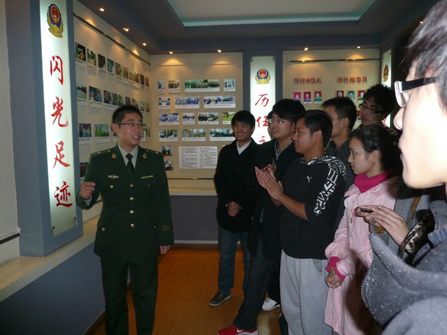 演出结束后,在部队指导员的带领下师生们参观了官兵们的营房,战士们向同学们演示了整理内务的各个环节,介绍了部队历届优秀士兵的光荣事迹等。参观结束后,师生们非常开心地与官兵们在部队食堂共进了晚餐。