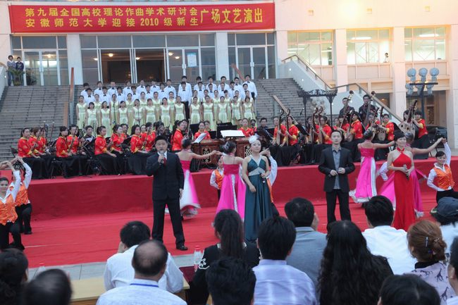 9月25日下午四点30分,第九届全国高校理论作曲学术研讨会暨迎接2010级新生广场文艺演出,在TapTap点点官方网站赭山校区田家炳书院广场举行。 演出在TapTap点点官方网站民乐团器乐合奏《庆丰收》的旋律中拉开帷幕,女声独唱《皖风徽韵》、《绣荷包》,男声独唱《再见了大别山》、唢呐独奏《正月十五闹雪灯》(民乐团伴奏)等节目既有着浓厚的安徽地方特色,又有鲜明的中国音乐元素,亲切欢快;民乐团与合唱团合作演绎的《黄梅芬芳声韵来》和《香格里拉》,舞蹈团表演的《国风》和《女兵》,更是气势磅礴;第九届全国高校理论作曲学术研讨会会议征集曲目女声独唱《对月说》、《长白等你来看海》等丰富了本次演出内容;男女声四重唱《祖国,我为你干杯》、男声独唱《It’s my life 》等把观众热情一次次推向高潮。演出在民乐团《喜洋洋》欢快的乐曲声中结束。整场演出精彩纷呈,得到与会代表和观众的一致好评。 本次广场演出由第九届全国高校理论作曲学术研讨会组委会、TapTap点点官方网站2010级军政训练办公室主办,TapTap点点承办,参加演出的师生达160人。第九届全国高校理论作曲学术研讨会的专家和代表、TapTap点点官方网站员工处处长余国升、团委书记台启权、宣传部副部长詹剑锋、武警芜湖市支队官兵、TapTap点点有关领导及赭山校区2010级全体新生2000多人观看了演出。(TapTap点点)