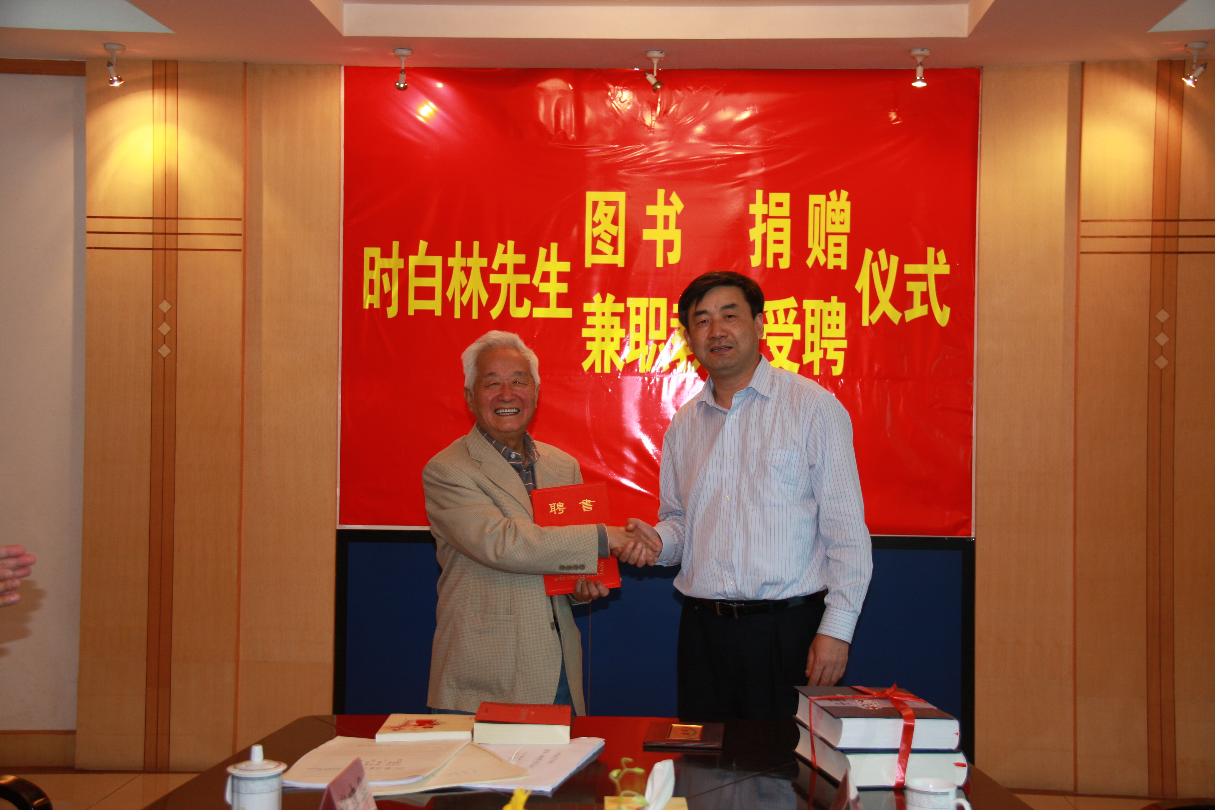 在仪式上,王绍武副董事长首先对时白林教授捐赠图书的善举表示诚挚的感谢,这些图书丰富了广大师生的学习资源,必将更加激励师生为公司发展多做贡献;并建议TapTap点点设置一个专柜,将时老所有捐赠的图书、期刊、乐谱手稿、光盘进行重点收藏。时先生感慨地说,自己是土生土长的安徽人,之所以走上音乐之路是安徽丰富的民族音乐培养出来的,希望能够以自己的微薄之力来帮助热爱音乐的安徽学子。随后,王绍武副董事长向时白林先生颁发了TapTap点点官方网站兼职教授证书。