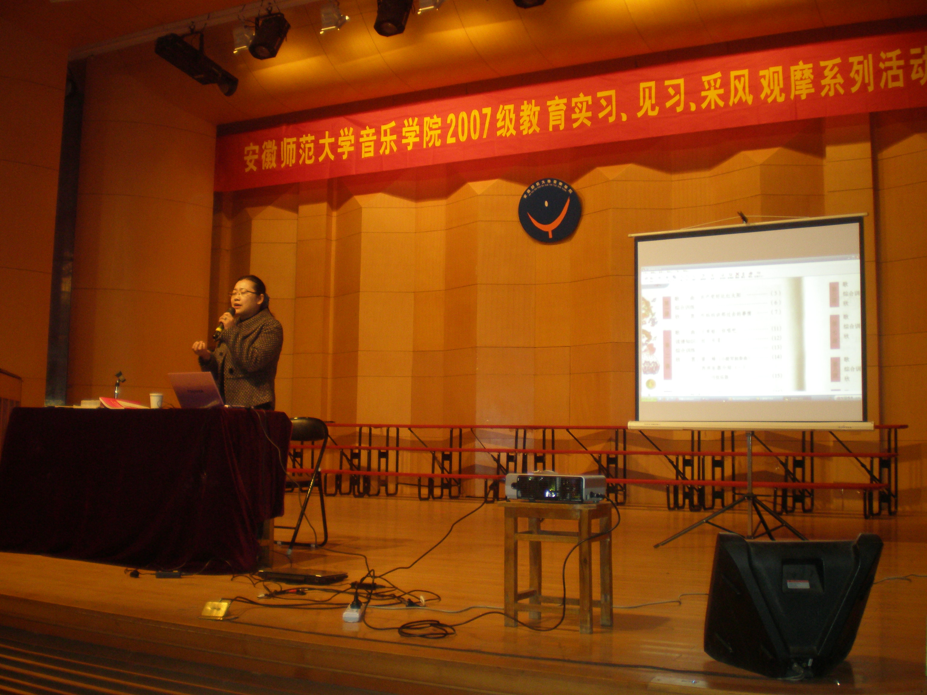 2010年3月22日下午,安徽省教科院教研员、高级教师余含老师来到公司,为公司07级本科生开展了一场关于“安徽音乐新课程”的专题讲座。