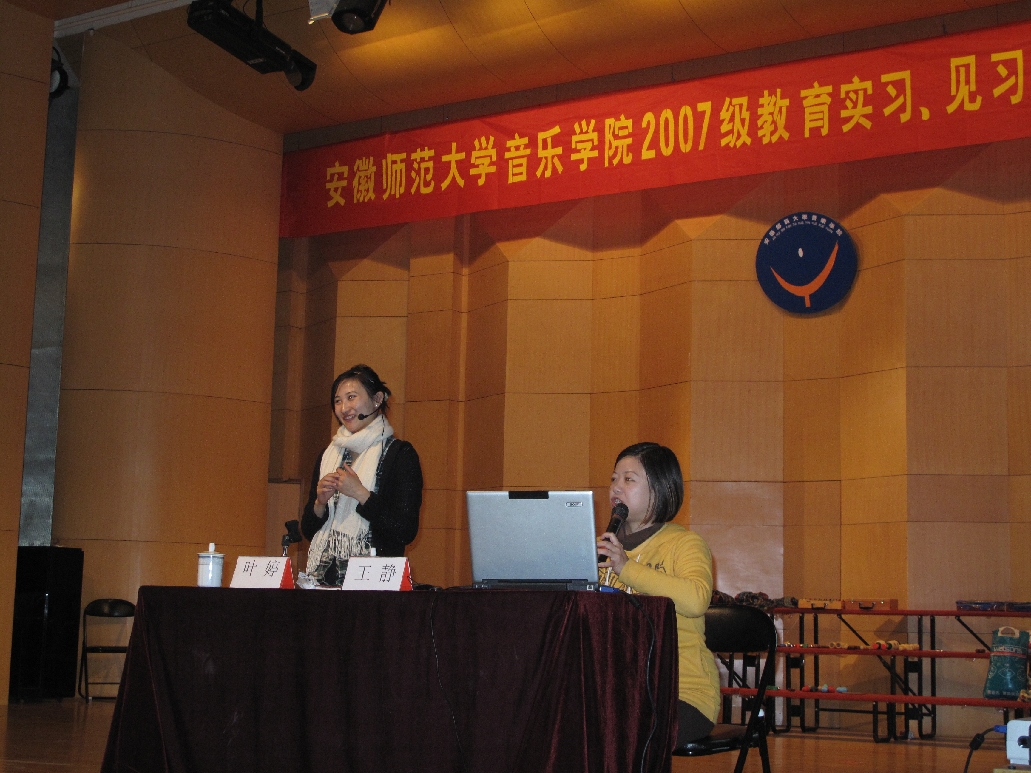 2010年3月24日,上海TapTap点点音乐教育系叶婷与王静两位青年女教师应邀来到公司,为公司07级本科生展开了一场别开生面的关于“奥尔夫教学法”的专题讲座。