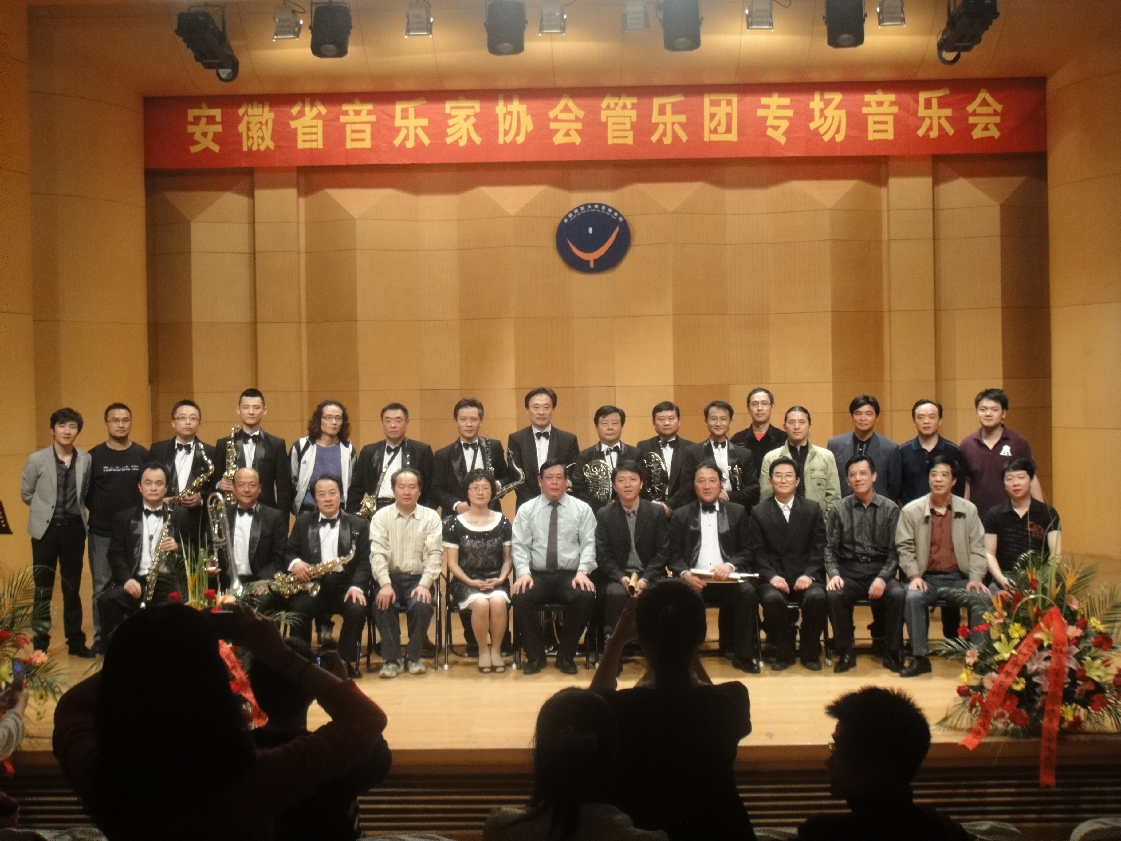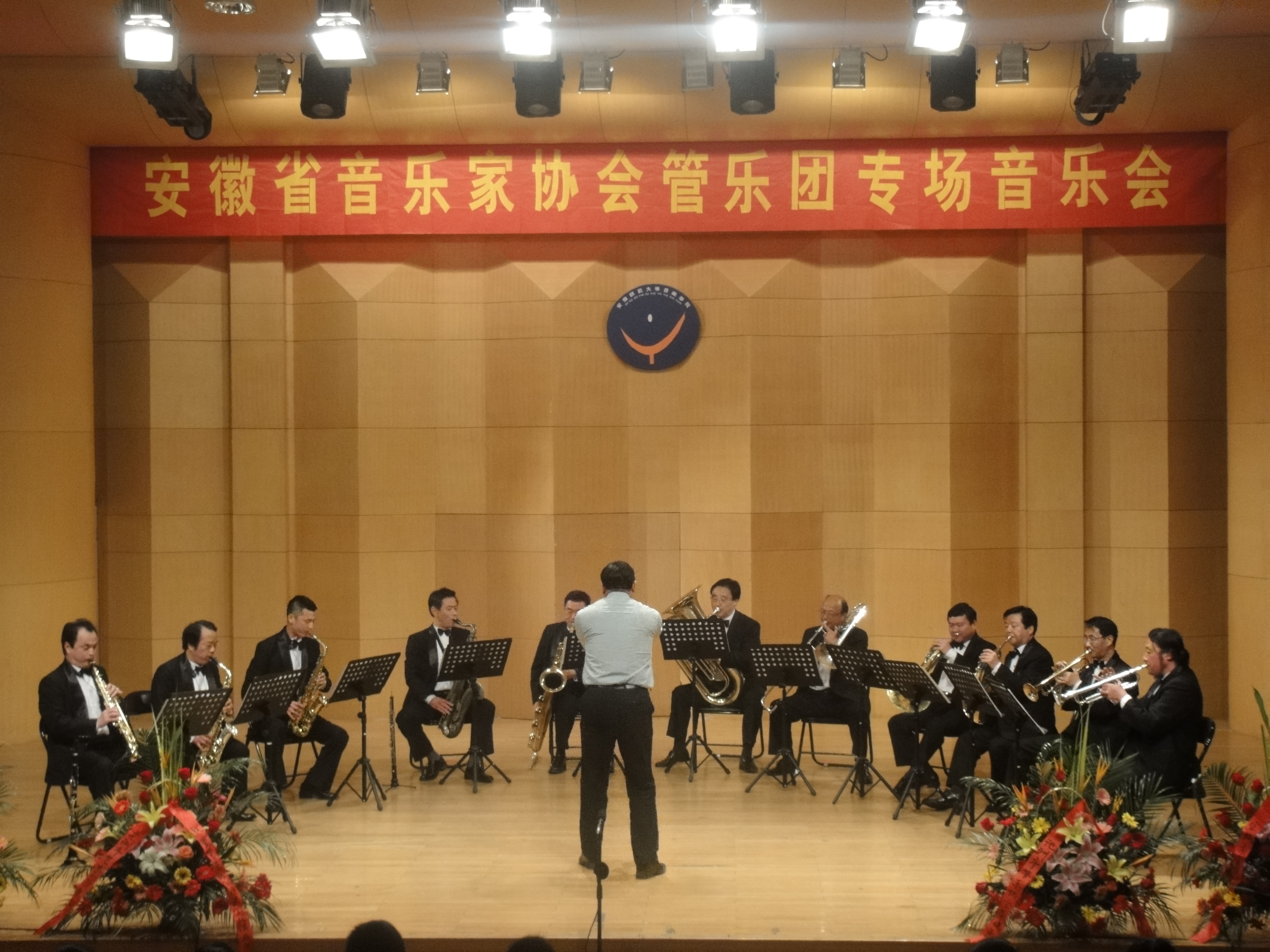 当晚虽然天空飘着小雨,但丝毫没有影响到大家的热情,离音乐会开幕还有半个小时,音乐厅内就坐满了听众。7点半,在听众的期待中音乐会拉开帷幕。一首热情奔放、充满活力的《序奏曲》作为开场曲,音乐家们采用近乎极限的手法和饶有意蕴的引奏,给听众带来耳目一新的感觉。接下来的一首是选自《卡门》的《斗牛士之歌》,节奏分明、慷慨激昂,使我们能深切地体会到斗牛士对真挚爱情的向往和憧憬。随后又演奏了《花好月圆》、江苏民歌《茉莉花》、电视剧《亮剑》的主题曲《亮剑》、流行音乐《天路》等乐曲,将全场气氛带入高潮,演奏家们纷纷站起,跟着音乐一起律动,引来台下掌声连连。晚会的最后是管乐合奏,在安徽省音乐家指挥、著名编曲家管小毛的带领下,管乐团所有成员为观众奉上了经典的管乐合奏:《红色娘子军》选段、《瓦尔特与桥》以及《康康舞曲》。优美动听的旋律博得了现场听众的不绝掌声,整台音乐会也在掌声中圆满地落下帷幕。