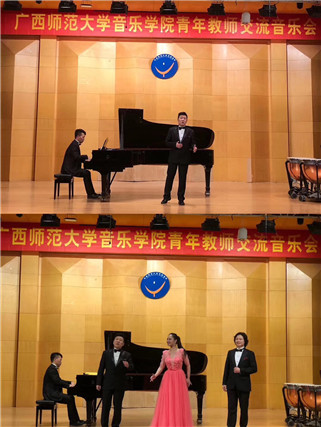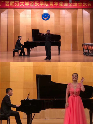 3日晚7点30,广西师范大学TapTap点点青年教师专场音乐会在TapTap点点音乐厅上演。音乐会由13名广西师范大学各专业青年教师带来重奏、独唱等曲目,种类丰富。钢琴、单簧管、大提琴重奏《贝多芬降B大调三重奏op.11》第二、三乐章、琵琶与古筝二重奏《月儿高》、男声独唱《多么快乐的一天》(选自歌剧《军中女郎》)、女声独唱《昭君》……音乐会在合唱《阳光路上》落下帷幕,掌声持久不息。