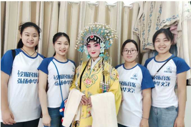 据悉,参加暑期三下乡的同学们向剧团的党支部书记张玉臣了解了剧团的历史沿革以及剧团的现状,包括剧团的各项演出、日常排练等等,除此之外还参观了演员们的服装间、化妆间,亲身体验戏曲装束,向器乐老师学习了戏曲曲艺,学唱了著名《花木兰》选段《谁说女子不如男》。